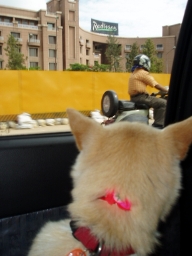 空港ではいろんな人に話しかけられながら、外に出ると、お迎えの人がニコニコと待っていてくれて、ケージを車に乗せてくれました。