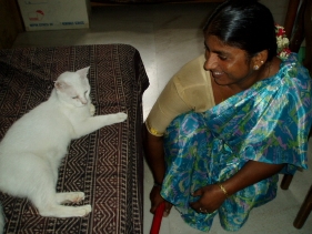サリーの人が通り過ぎる時にサリーの裾にカフッと噛み付いたりしています。